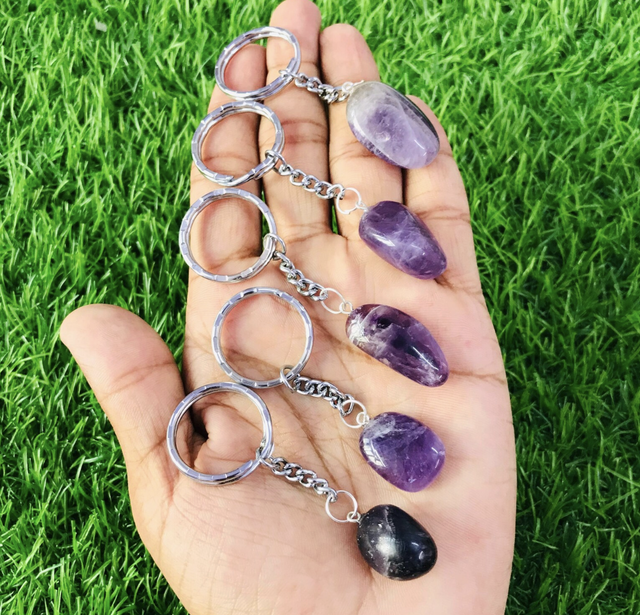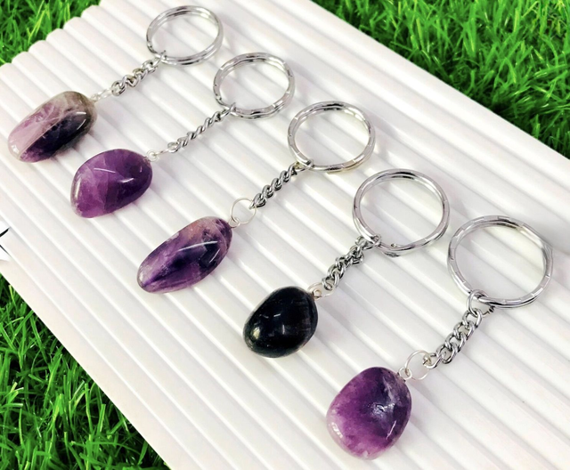 Amethyst Crystal Tumblestone Keyring