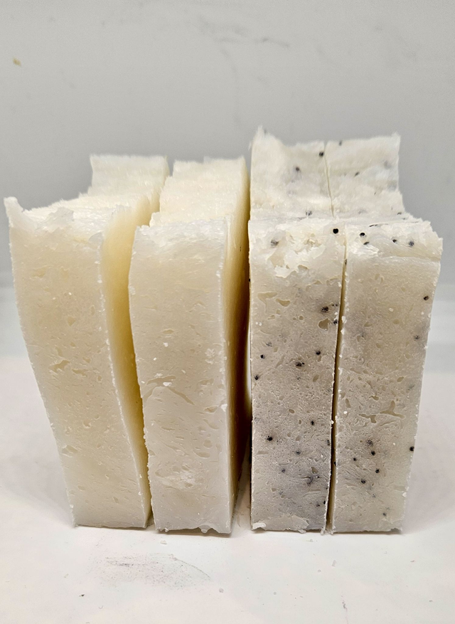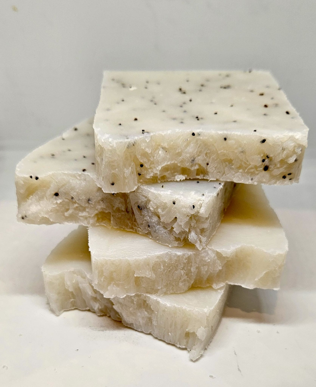 Ingredients: Coconut Oil, Water, Sodium Hydroxide, with Poppy Seeds. Essential Oils: Lavender.