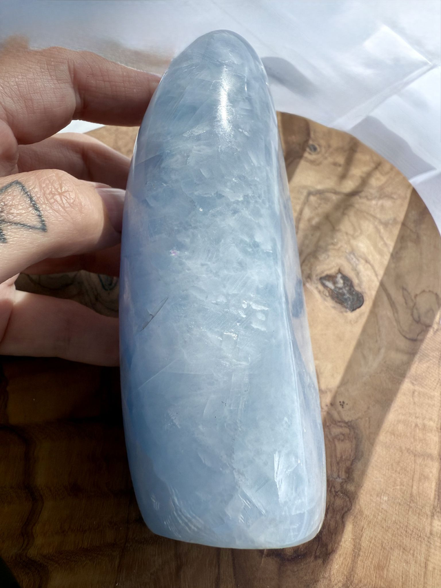 Blue Calcite is said to bring a state of serenity whenever, wherever. Combining the purifying and cleansing properties of Calcite with the soothing energy of the blue colour ray a go-to tool to help you find your calm, and as it’s connection to the upper chakras it can also support your communication and to live authentically, calming and soothing and great to have near your bed for calmness.