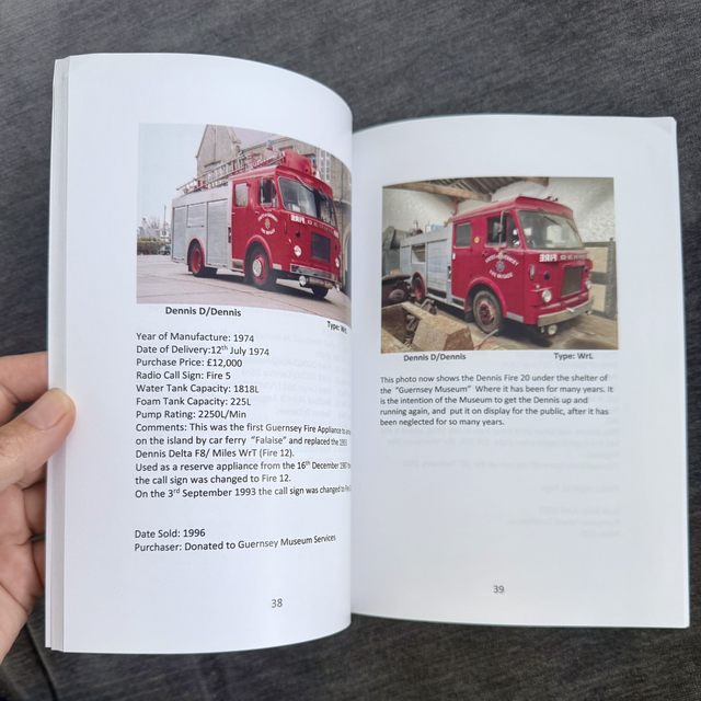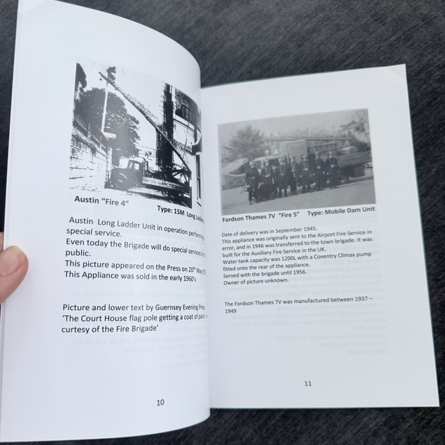 This book contains the history of Guernsey Fire Engines that have served this beautiful Island for 100 years. It is a soft bound book, A5, 97 pages full of information, some black and white photo's, with the majority are in colour.