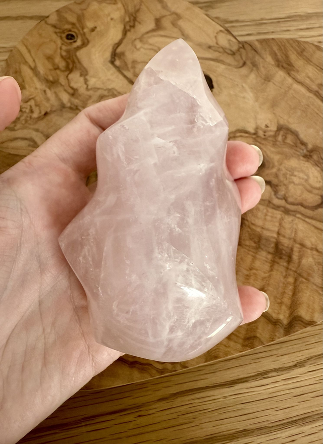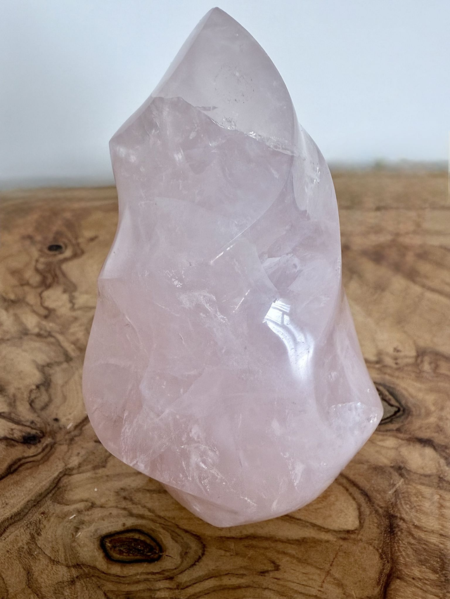 This beautifully carved Rose Quartz Flame is a striking symbol of love, healing, and emotional balance.